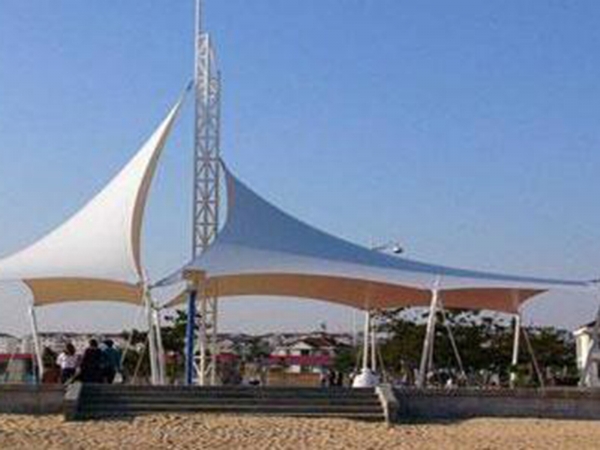 膜结构建筑的特点及应用领域:膜结构是一种全新的建筑结构形式,它集建筑学、结构力学、精细化工与材料科学、计算机技术等为一体,具有很高技术含量。其曲面可以随着建筑师的设计需要任意变化,结合整体环境,建造出标志性的形象工程。膜结构建筑有张拉类、悬吊类、充气类、桁架结构类等。产品广泛应用于体育场馆、广场、大型停车场、停机库、高速公路收费站、加油站、博览会展厅、临时会场、休闲场所、景区装饰等。